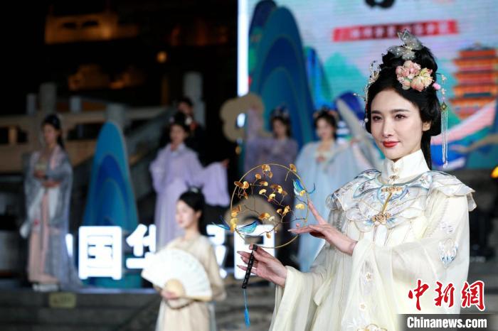 今年4月22日,農(nóng)歷三月初三“上巳節(jié)”,一場華服大秀在超然樓前舉行?!≈行律缬浾?梁犇 攝