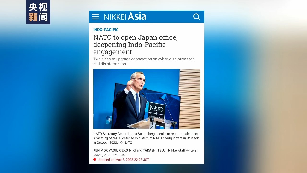 今年5月,日本《日經(jīng)亞洲》刊出獨(dú)家新聞,援引來(lái)自日本和北約官員的信源報(bào)道稱,北約駐日本辦事處將在2024年正式掛牌。