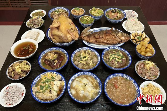 “四八席”有24道菜。即:四鋪?zhàn)?、四壓桌、兩大件、八大碗、四小碗、兩糕點(diǎn)。 張文諳 攝