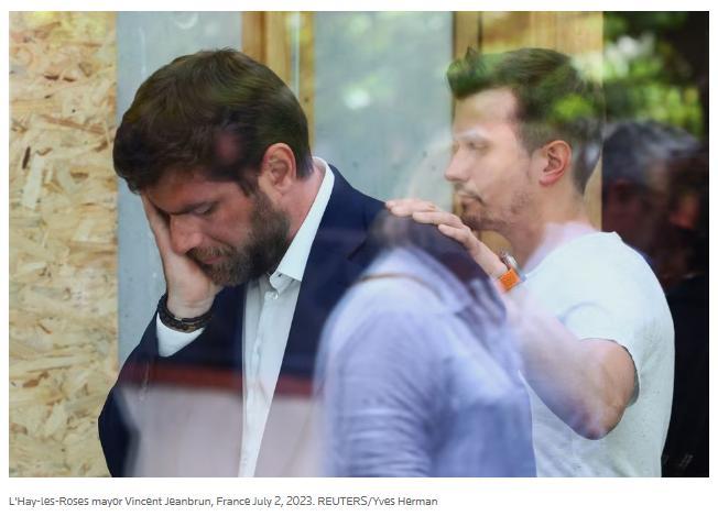 當(dāng)?shù)貢r(shí)間7月2日,家中遭襲擊后的法國拉伊萊羅斯市市長讓布蘭。圖片來源:路透社報(bào)道截圖