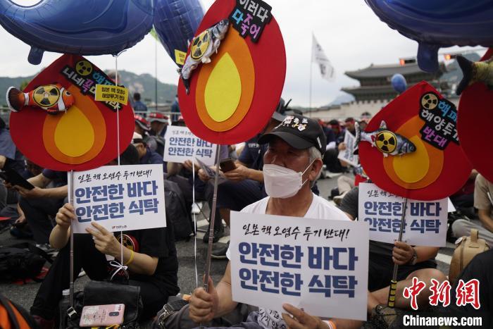 當地時間7月8日,韓國多個市民團體和在野黨在首爾集會,抗議日本強推核污染水排海計劃。 中新社記者 劉旭 攝