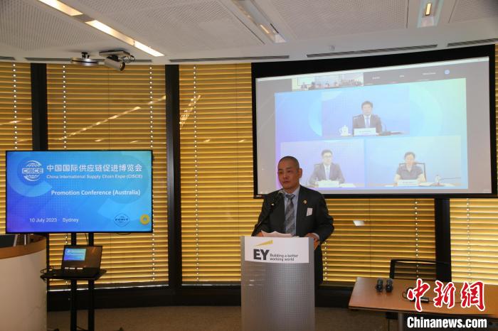 中新社悉尼7月10日電 (記者 顧時宏)首屆中國國際供應(yīng)鏈促進(jìn)博覽會(鏈博會)澳大利亞站路演活動10日下午在悉尼以線上線下相結(jié)合的方式舉行。