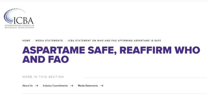 同一天,國際飲料協會委員會(ICBA)發(fā)布文章稱,目前含阿斯巴甜的食品和飲料是安全的。ICBA還強調,IARC不是食品安全機構,它現在正式承認,阿斯巴甜造成的危害并不比蘆薈和其他數百種物質的危害大,這些物質根據IARC描述都屬于證據“有限”和“不完全充分”的分類。