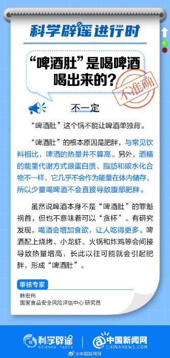 中新網(wǎng)7月18日電 “啤酒肚”的根本原因是肥胖,與常見飲料相比,啤酒的熱量并不算高。另外,酒精的能量代謝方式跟蛋白質(zhì)、脂肪和碳水化合物不一樣,它幾乎不會作為能量在體內(nèi)儲存,所以少量喝啤酒不會直接導(dǎo)致腹部肥胖。雖說啤酒本身不是“啤酒肚”的罪魁禍?zhǔn)?,但也不意味著可以“貪杯”?來源:科學(xué)辟謠、中國新聞網(wǎng))