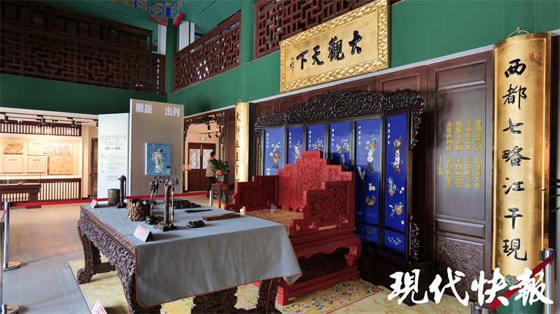 館內鴛鴦廳為“何以狀元”主題展廳,通過實物展品再現(xiàn)古代科舉流程,介紹了一個狀元是如何誕生的?,F(xiàn)代快報記者了解到,2001年,在整修鴛鴦廳時,曾在上方發(fā)現(xiàn)一方被后人所加“吊頂”遮住的匾。潘世恩高中狀元后,為官五十余年,歷經(jīng)四朝,深得皇帝恩寵,被譽為“三百年間第一福氣之人”。每逢大壽,皇帝都會親賜御匾。后經(jīng)專家考證,該匾即是道光皇帝于潘世恩六十大壽之時御筆賞賜的黑底盤龍金書方匾。