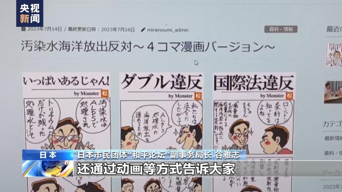日本市民團體“和平論壇”副事務局長谷雅志:我們網(wǎng)站首先發(fā)布當?shù)貪O民反對核污染水排海的內容,還通過動畫等方式告訴大家核污染水排海所存在的問題。希望能讓更多人關注核污染水排海問題,了解可能造成的負面影響。