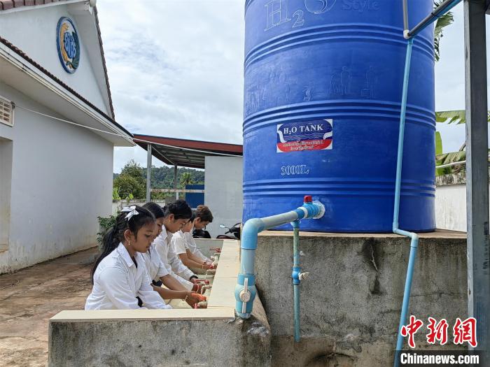 俄勒塞村小學距離柬埔寨首都金邊約300公里。由兩個巨大的藍色圓形容器組成的反滲透純水處理系統(tǒng)矗立在校園一隅。一個月前,這套設備正式投入使用。擰開水龍頭,一股清澈透明的純凈水嘩嘩直流,學生們臉上洋溢著喜悅的笑容。