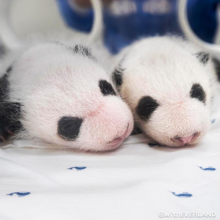 據(jù)報道,從公開的照片來看,這對大熊貓寶寶已開始慢慢長胖,眼睛、耳朵、肩膀、胳膊、腿周圍,顯現(xiàn)出獨特的黑色斑紋。