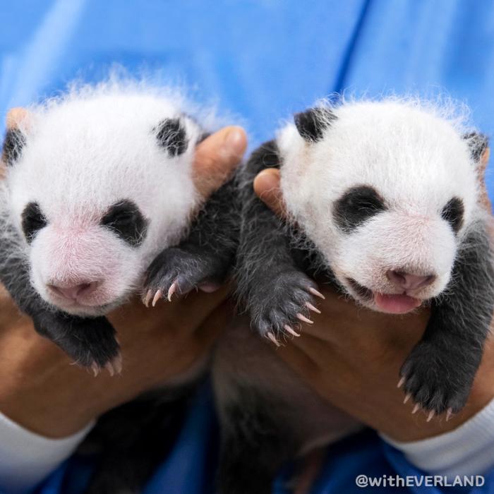 大熊貓“愛寶”“樂寶”于2月成功交配,懷胎約5個月后順利生產(chǎn)。當?shù)貢r間7月7日清晨,“愛寶”產(chǎn)下一對雌性雙胞胎幼崽。這是2023年在海外出生的首對大熊貓幼崽,也是在韓國誕生的首對大熊貓雙胞胎。