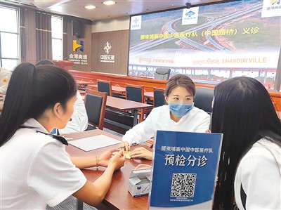 金港高速是柬埔寨第一條高速公路,是中柬共建“一帶一路”重點(diǎn)項(xiàng)目,柬埔寨本地員工占比達(dá)到88%。這里高溫高濕的工作環(huán)境,導(dǎo)致頸肩腰腿痛疾病及胃腸病在員工中高發(fā)。義診現(xiàn)場(chǎng),中醫(yī)醫(yī)師用心傾聽(tīng)每個(gè)員工的癥狀和困擾,望聞問(wèn)切,耐心診察,辨證施治,制定個(gè)性化的治療方案。