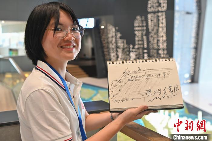 8月8日,2023年全國(guó)臺(tái)聯(lián)第二十屆臺(tái)胞青年千人夏令營(yíng)廣東分營(yíng)在廣州開營(yíng)。圖為一名臺(tái)灣青年學(xué)生展示自己素描的廣州陳家祠。中新社記者 陳驥旻 攝