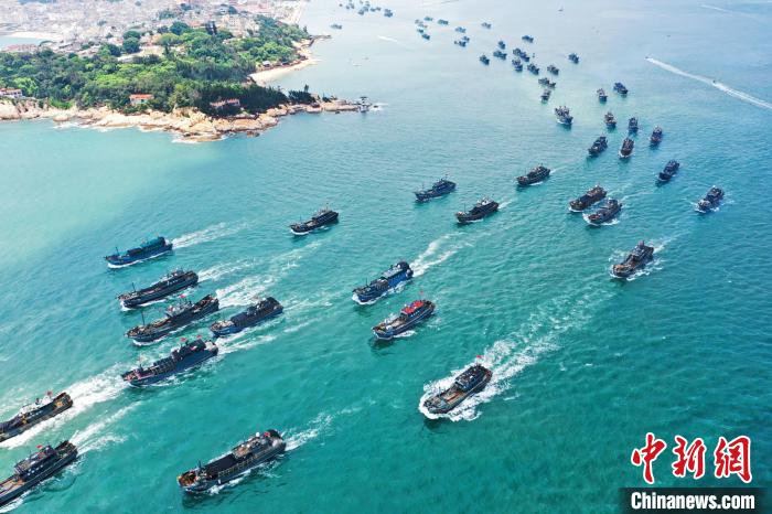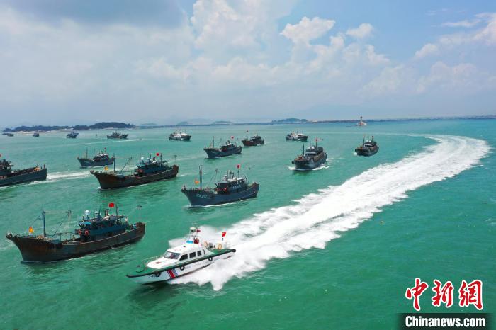中新網(wǎng)漳州8月16日電(蔡曉曄)16日12時起,北緯26度30分以南的東海結(jié)束為期3個半月的伏季休漁期,在福建省漳州市各碼頭,眾多漁船在海警艦艇的護航下有序駛離漁港,千帆競發(fā)奔赴不同漁區(qū)開展捕撈作業(yè)。