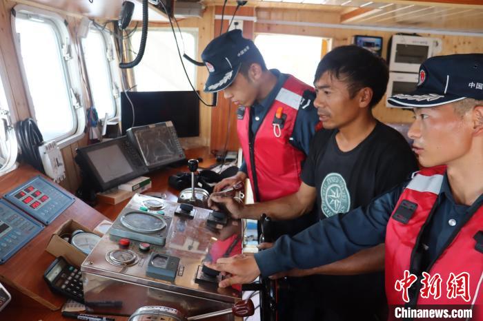 海警執(zhí)法員對漁船導航儀器設(shè)備進行檢查。蔡曉曄 攝