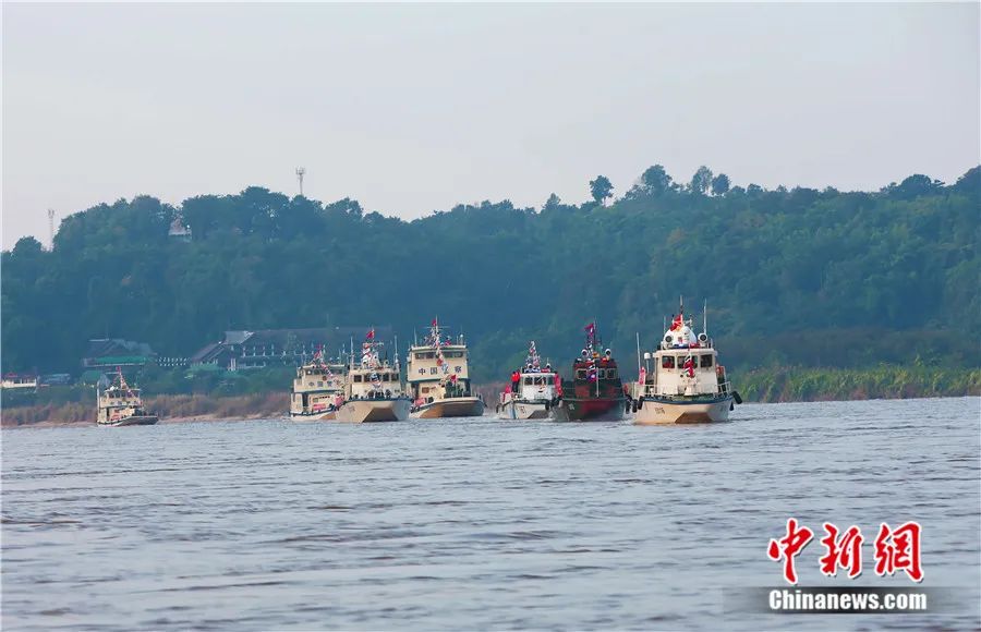 中老緬泰湄公河聯(lián)合巡邏執(zhí)法行動執(zhí)法艇在湄公河上巡邏。李鵬飛 攝