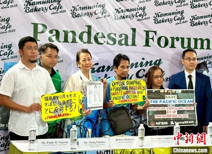 當(dāng)?shù)貢r(shí)間8月24日,一場(chǎng)關(guān)于反對(duì)日本核污染水排海的“面包坊論壇”在菲律賓首都馬尼拉舉行。圖為與會(huì)環(huán)保人士及漁民組織代表等手舉“堅(jiān)決反對(duì)福島核污染水排入太平洋”等標(biāo)語。中新社記者張興龍攝
