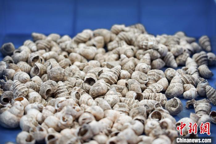 在廣西柳州白蓮洞洞穴科學(xué)博物館庫房內(nèi),文物管理員梁媚連日來一直在用毛刷清洗螺螄殼化石,這些螺螄殼化石距今已有兩萬六千年的歷史?!霸趲旆績?nèi)保存的所有白蓮洞出土物件中,要數(shù)螺螄殼的數(shù)量最多,可以想象白蓮洞人是十足的‘嗦螺’愛好者?!绷好恼f。