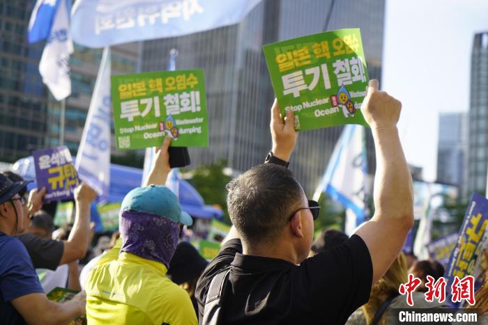當天下午,集會在首爾中區(qū)新聞中心前舉行。中新社記者在現(xiàn)場看到,大批民眾手舉寫有“停止日本排放核污染水行為!”“反對向海洋傾倒福島核污水!”等字樣的標語,并高呼“立即停止向海洋傾倒核污染水!”“禁止進口所有日本水產品!”等口號,要求日本停止向海洋傾倒福島核電站核污染水,并敦促韓國政府向國際海洋法法庭起訴日本。