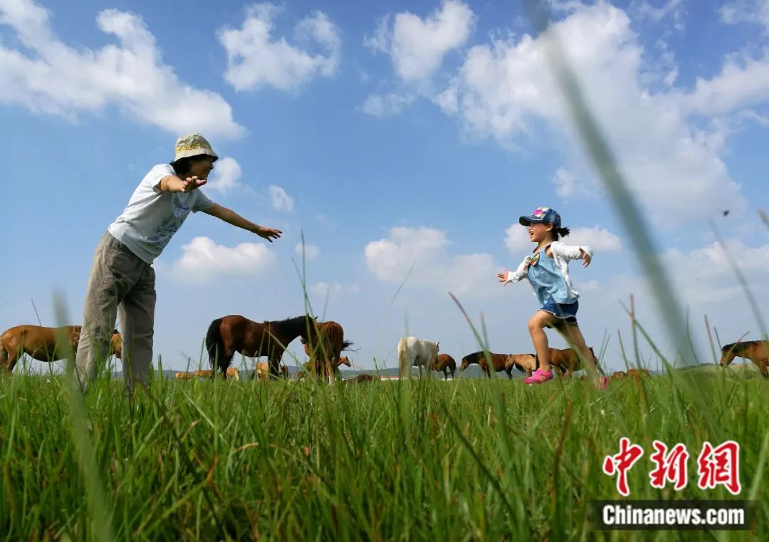 2016年8月,祖孫倆在塞罕壩機械林場內(nèi)玩耍。在半個多世紀(jì)的時間里,塞罕壩人將昔日飛鳥不棲、黃沙遮天的荒原,變成百萬畝人工林海。楊可佳 攝