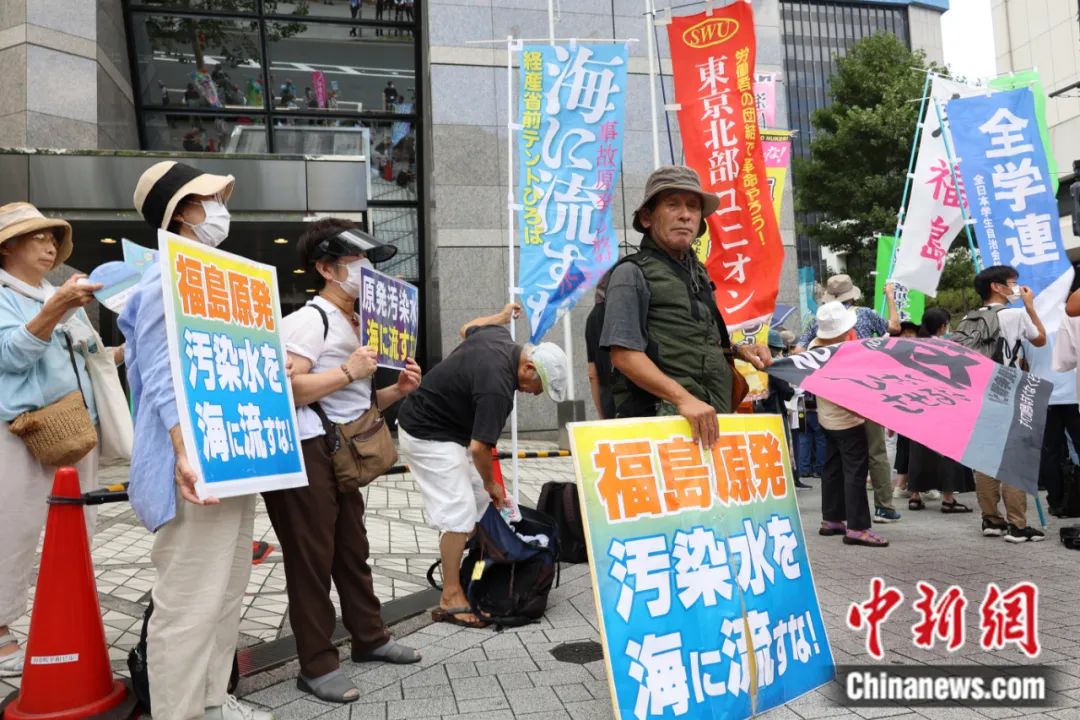 2023年8月24日,日本民眾在位于東京千代田區(qū)的東京電力公司總部附近舉行集會,強烈反對日本政府當(dāng)天啟動福島核污染水排海作業(yè)。朱晨曦 攝