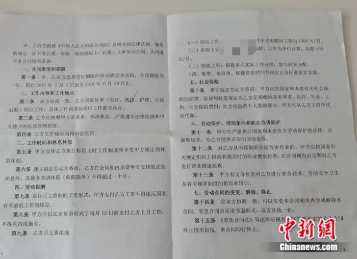 李月告訴中新網(wǎng),她是在醫(yī)院實行招聘制后進入,剛開始簽訂的勞動合同期限是三年。2017年開始,醫(yī)院與她重新簽訂聘用工作人員勞動合同書,合同期限為一年,此后勞動合同便都開始一年一簽,直到去年解除勞動關(guān)系。