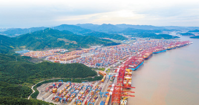 2023年6月,浙江省寧波舟山港穿山港區(qū)集裝箱碼頭,生產(chǎn)泊位“座無(wú)虛席”。
