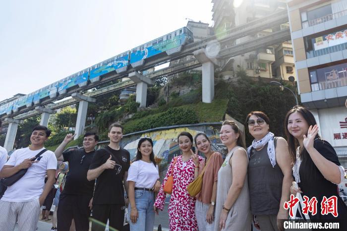 穿樓而過的李子壩軌道交通站是重慶知名旅游景點。參訪團一行乘坐重慶軌道交通二號線到達李子壩站,體驗“軌道上的重慶”?!斑@棟樓里有人住嗎?”“列車穿樓過對樓內(nèi)居民生活有沒有干擾?”代表團一行出站后詢問工作人員。