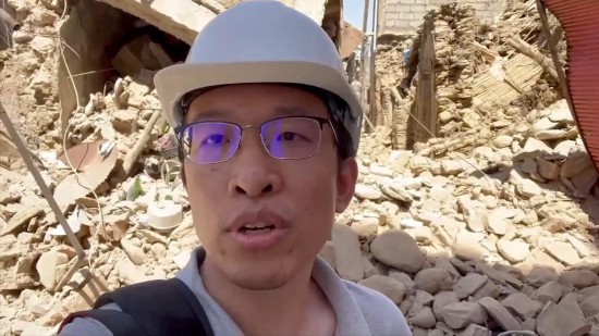 新華社記者霍晶奔赴震中附近的艾米茲米茲村,進行現(xiàn)場報道。