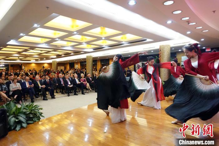 當?shù)貢r間9月13日,中國駐紐約總領館在紐約舉行慶祝中華人民共和國成立74周年招待會,領區(qū)政商學媒等各界代表近400人出席。圖為觀眾觀看古典舞蹈《書簡舞》。 中新社記者 王帆 攝