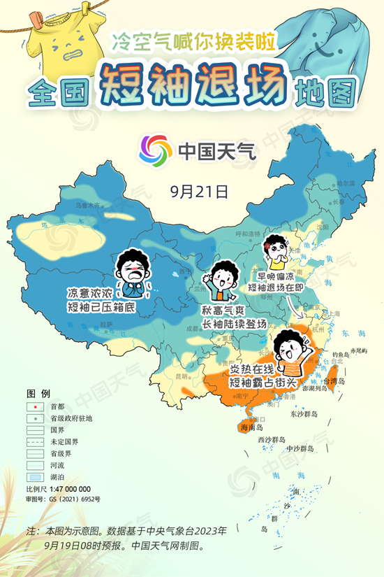 中國天氣網(wǎng)訊 進入9月中旬,冷空氣變“勞模”頻繁來襲,西北、東北大部都已邁入秋天門檻,但華北一帶今年秋天似乎來得有點兒晚,南方地區(qū)白天甚至熱到還要開空調(diào),不少網(wǎng)友喊話“秋高氣爽何時能來?”今起三天(9月19日至21日),受冷空氣和降雨共同影響,長江以北大部地區(qū)將陸續(xù)迎來降溫,開啟秋日初體驗。中國天氣網(wǎng)特別推出全國短袖退場地圖,看看哪里可以安排秋天的第一件長袖。