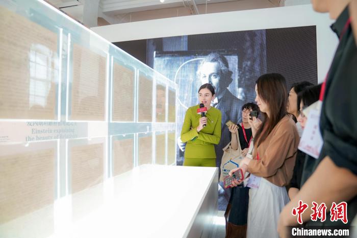 中新網(wǎng)上海9月19日電 (記者 陳靜) 科學(xué)家阿爾伯特·愛因斯坦的親筆簽名手稿19日亮相上海。數(shù)十件中外名家精品力作同期展出。
