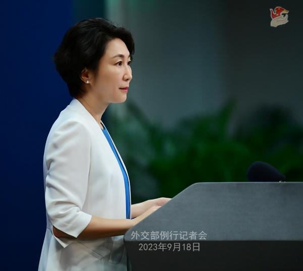 中新網(wǎng)北京9月18日電 (謝雁冰)中國(guó)外交部發(fā)言人毛寧9月18日主持例行記者會(huì)。
