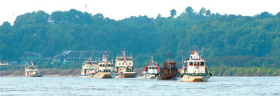 瀾滄江—湄公河從中國關(guān)累到泰國清盛一段航運(yùn)最為繁忙,大量物資在中老緬泰四國間運(yùn)輸往來。裝滿貨物的各國商船在水面上來回穿梭,一片繁忙;兩岸村莊升起裊裊炊煙,一片祥和。長期在湄公河上跑船的一名船長說:“有聯(lián)合巡邏執(zhí)法編隊(duì)在,我們跑船很放心。感謝四國聯(lián)合巡邏執(zhí)法為湄公河帶來了安寧!”