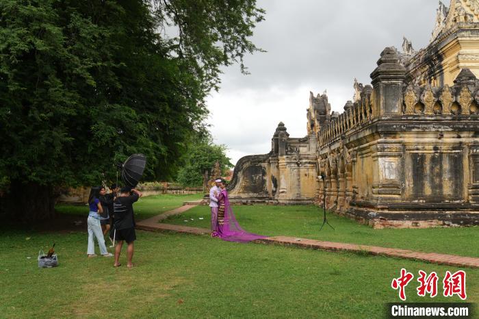 9月30日,緬甸曼德勒,一對新人在因瓦古城遺址拍攝婚紗照?!≈行律缬浾?劉冉陽 攝