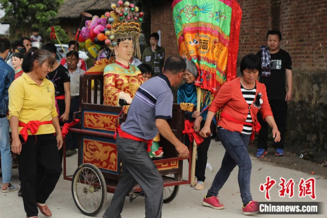 冼夫人(神像)在信眾的簇?fù)硐卵惨暠就?,為這里的人們帶來心靈的慰藉。蘇崢 攝
