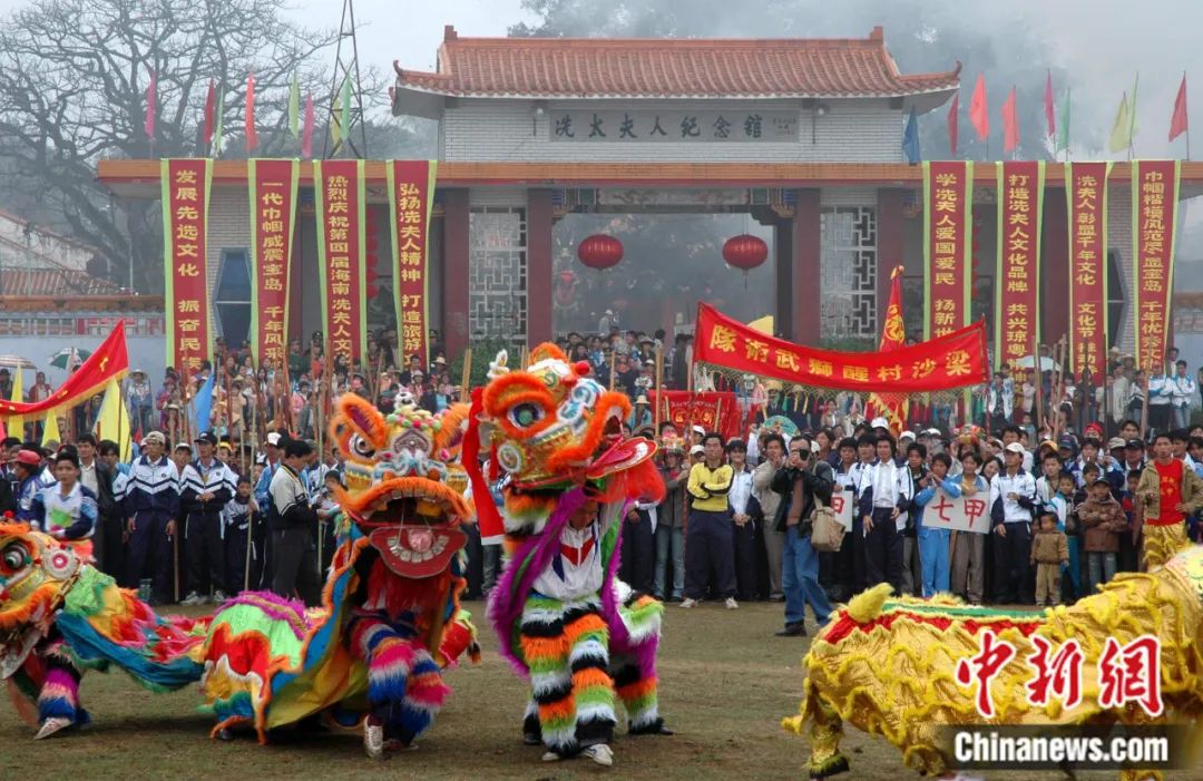 如今,海南島各地建有400多座規(guī)模不等的冼夫人廟。民眾自發(fā)組織緬懷冼夫人的祭祀信俗活動(dòng),經(jīng)過長期的歷史傳承、時(shí)代演變,逐漸發(fā)展成為了海南流傳最久、分布最廣、最隆重?zé)狒[的傳統(tǒng)民俗節(jié)日——“軍坡節(jié)”。2014年11月,基于海南軍坡節(jié)和廣東年例而形成的冼夫人信俗,被列入第四批國家級(jí)非物質(zhì)文化遺產(chǎn)名錄。