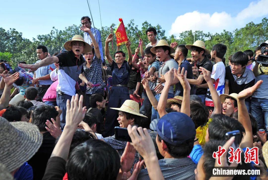 在海南鄉(xiāng)村,每年農(nóng)歷二、三月之間,村鎮(zhèn)將會(huì)舉行熱鬧的“鬧軍坡”活動(dòng)。這是海南人的重大節(jié)日之一,起源一般都認(rèn)為是以紀(jì)念冼夫人為主。駱云飛 攝