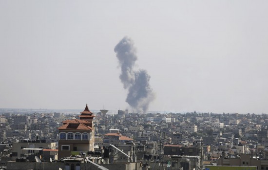↑這是10月7日在加沙地帶南部城市拉法拍攝的以色列軍隊空襲造成的濃煙。新華社發(fā)(哈立德·奧馬爾攝)