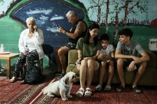 ↑10月7日,防空警報響起后民眾在以色列特拉維夫一處建筑內(nèi)躲避。新華社發(fā)(吉德翁·馬科維奇攝/基尼圖片社)