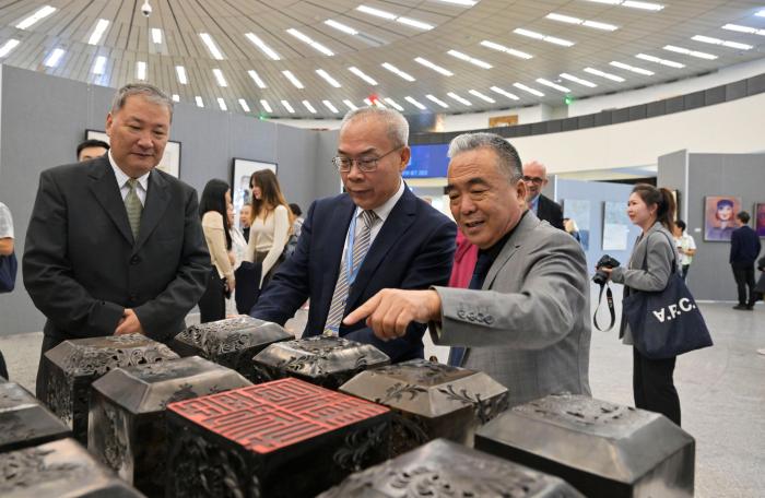 開幕式現(xiàn)場氣氛熱烈,各國外交官及國際職員們被參展藝術家的作品深深吸引,對中外藝術家通過當代藝術角度,表達對中國式現(xiàn)代化應對全球性挑戰(zhàn)的思考、傳播推進全球發(fā)展事業(yè)和世界發(fā)展合作的意識予以高度評價,對藝術家的精彩呈現(xiàn)表達贊嘆。