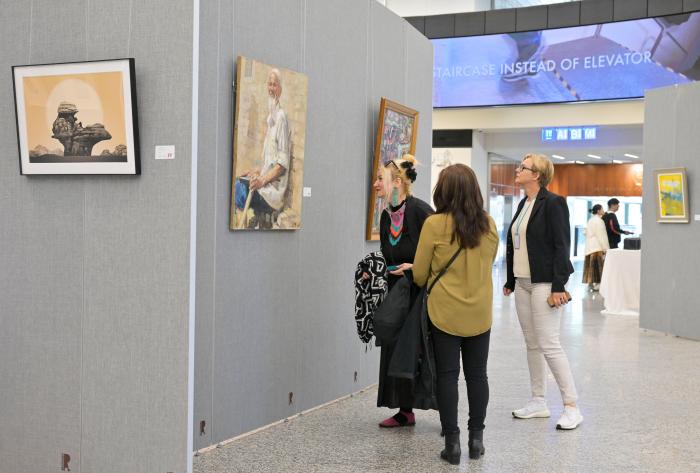 各國外交官和聯(lián)合國國際職員們在欣賞中國藝術家的作品。歐洲時報記者周修怡 攝