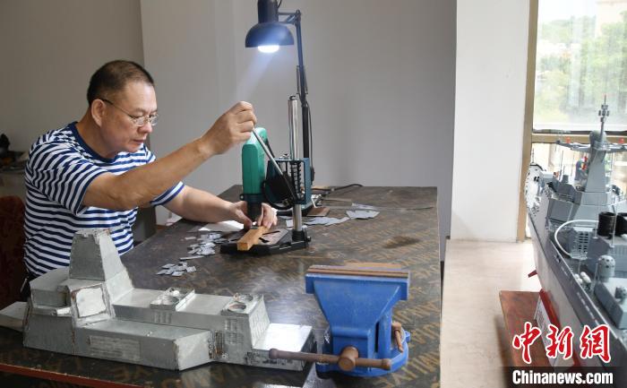 “這艘艦是用鍍鋅板按100∶1的比例制作的,花了我大概3年的業(yè)余時(shí)間,純手工制作?!?980年曾服役于東海艦隊(duì),1983年退伍的漳州薌城籍海軍老兵潘雄告訴記者,他專注制作艦艇模型近40年,平均每?jī)赡暝煲凰?,目前已造出“遼寧號(hào)”航母、中華神盾艦等各類艦艇20艘模型,并有兩艘055型驅(qū)逐艦?zāi)P驼谥谱髦小?/p>