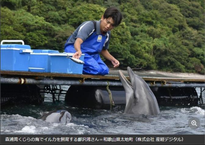 在“森浦灣鯨之海”飼養(yǎng)海豚的鄭澤鴻。圖片來(lái)源于《產(chǎn)經(jīng)新聞》報(bào)道截圖。