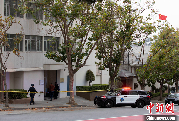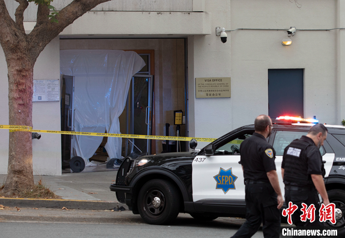 當?shù)貢r間10月9日,美國舊金山警方在中國駐舊金山總領(lǐng)館附近對總領(lǐng)館館舍遭沖闖襲擊事件展開調(diào)查。中國駐舊金山總領(lǐng)館發(fā)言人表示,9日下午,有不明身份人員駕車暴力沖撞闖入中國駐舊金山總領(lǐng)館證件大廳,對工作人員及現(xiàn)場民眾生命安全構(gòu)成嚴重威脅,對總領(lǐng)館設(shè)施與財產(chǎn)造成嚴重破壞,性質(zhì)極其惡劣。 中新社記者 劉關(guān)關(guān) 攝