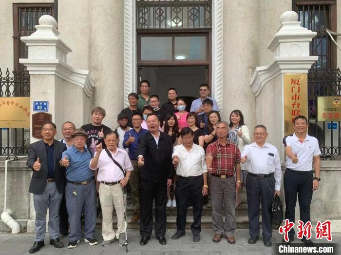 參加廈門市臺(tái)聯(lián)周三會(huì)客廳的臺(tái)胞在廈門臺(tái)灣公會(huì)會(huì)館前合影。陳雅璇 攝