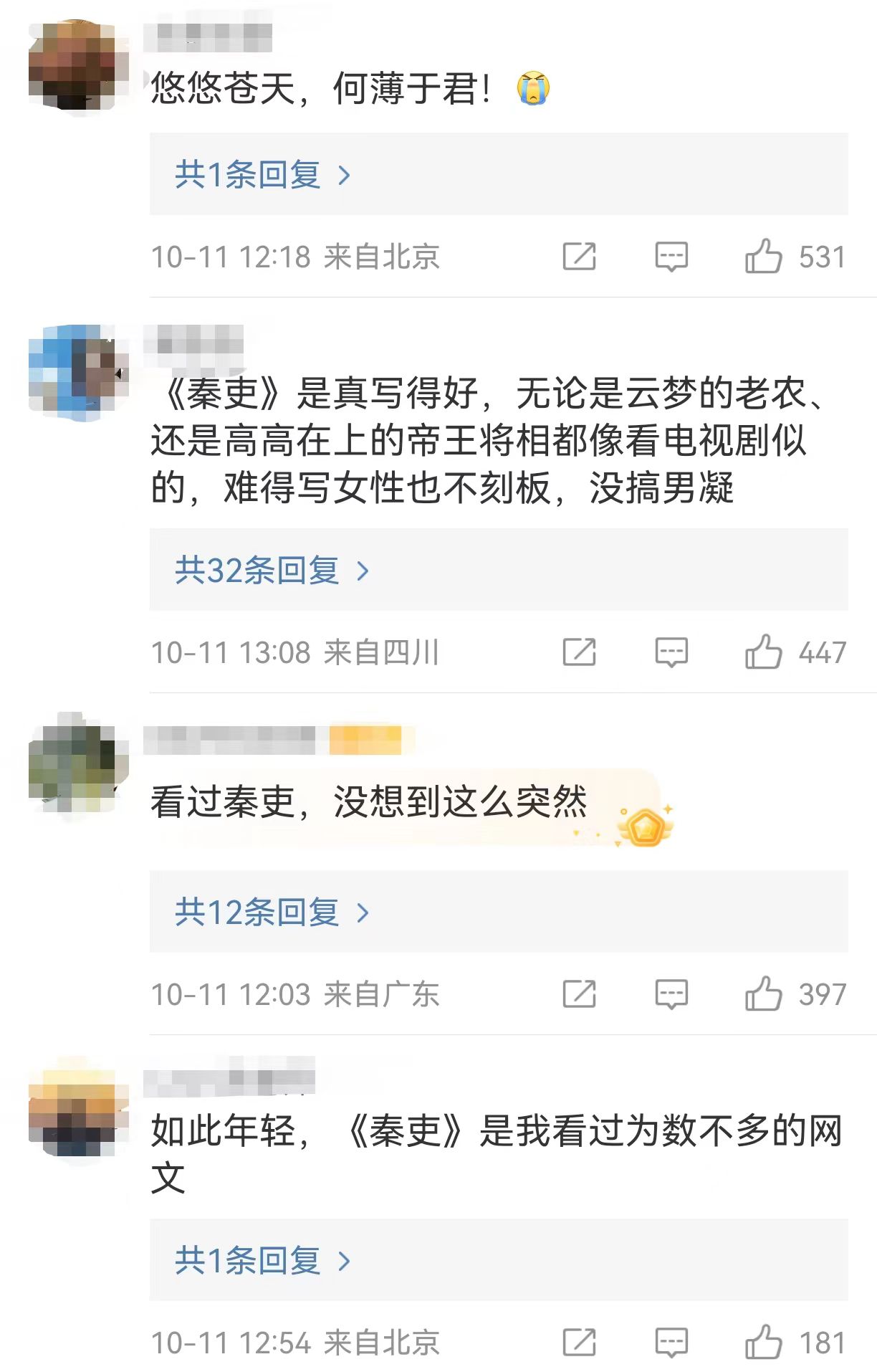 閱文集團(tuán)發(fā)布的訃告里寫道:“七月新番一生赤誠(chéng),專注。他有志于循中國(guó)歷史脈絡(luò),由遠(yuǎn)及近,針對(duì)各個(gè)歷史時(shí)期完成相應(yīng)的故事創(chuàng)作。為此,他嚴(yán)謹(jǐn)推敲,細(xì)致考據(jù),從極少作家涉足的春秋戰(zhàn)國(guó)題材起筆,扎實(shí)書寫秦、漢故事。他所塑造的黑夫、任弘、第五倫等角色,燦爛鮮活,引讀者共鳴、共情,如今中斷于三國(guó)篇,我們深感悲痛、遺憾?!?/p>