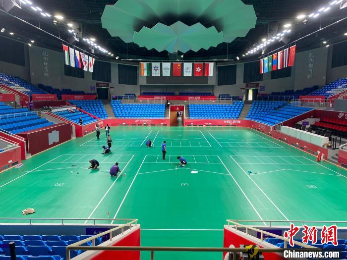 杭州體育館正在布置硬地滾球比賽場(chǎng)地。郭天奇攝