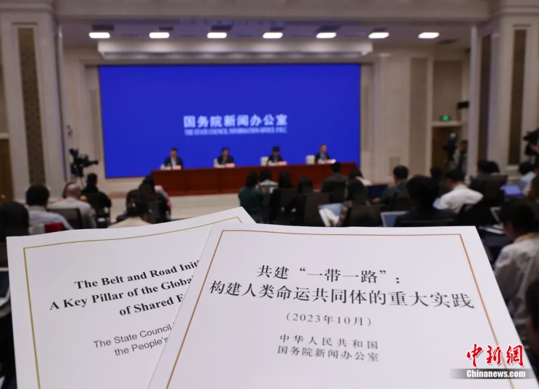 2023年10月10日,中國(guó)國(guó)務(wù)院新聞辦公室在北京舉行新聞發(fā)布會(huì),發(fā)布《共建“一帶一路”:構(gòu)建人類命運(yùn)共同體的重大實(shí)踐》白皮書。楊可佳 攝