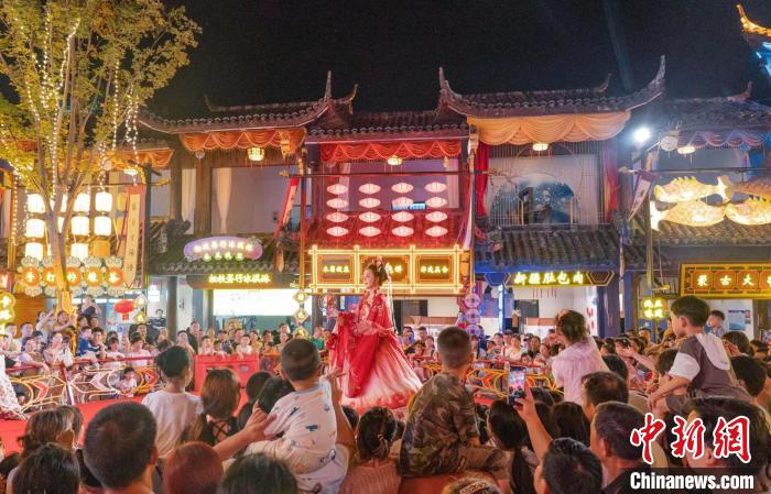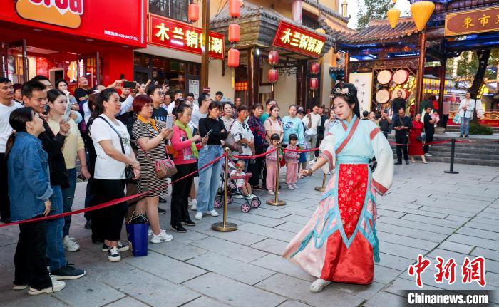10月18日,游客在木蘭不夜城觀(guān)看演出。張暢 攝