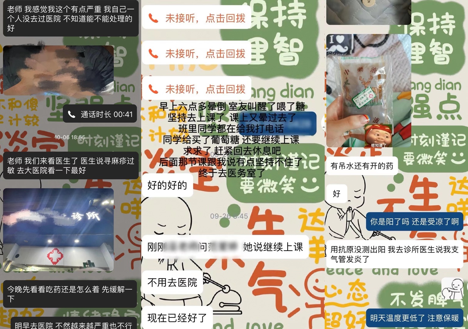 每周都會有因生病請假的大學(xué)生。受訪者供圖