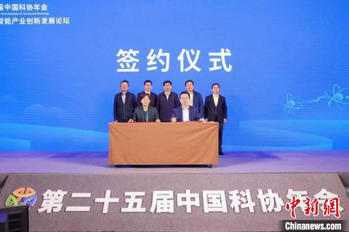 第二十五屆中國科協(xié)年會通用人工智能產(chǎn)業(yè)創(chuàng)新發(fā)展論壇上,中國自動化學(xué)會與科大訊飛簽署戰(zhàn)略合作協(xié)議。中國科協(xié) 供圖